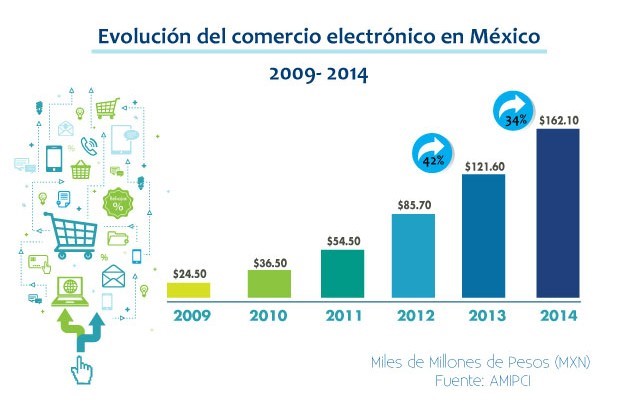 - Uno de los aspectos más relevantes que han generado una evolución del comercio digital en México con cifras realmente altas de crecimiento es la necesidad de las empresas de atraer más clientes a sus portales virtuales con estrategias publicitarias agresivas que incitan al comprador a realizar transacciones en línea desde la comodidad de su hogar y a la cual llegará el producto adquirido.